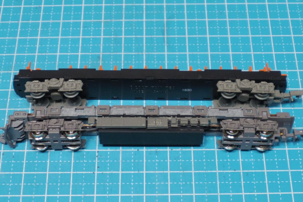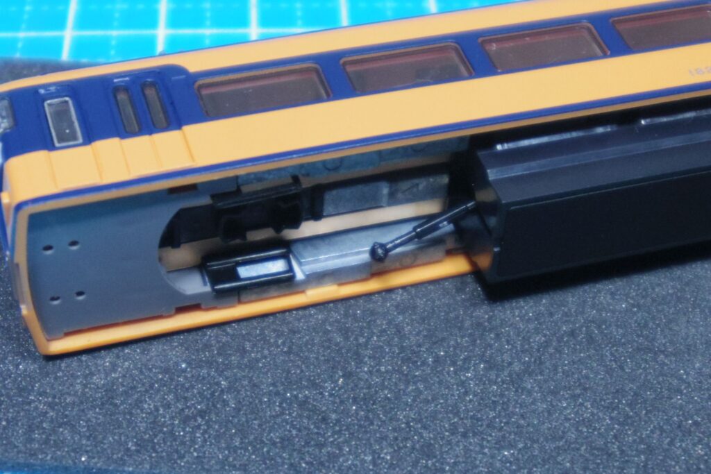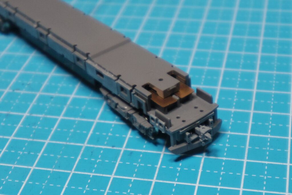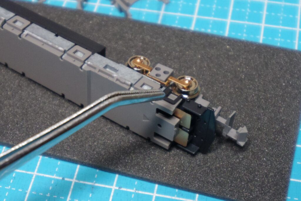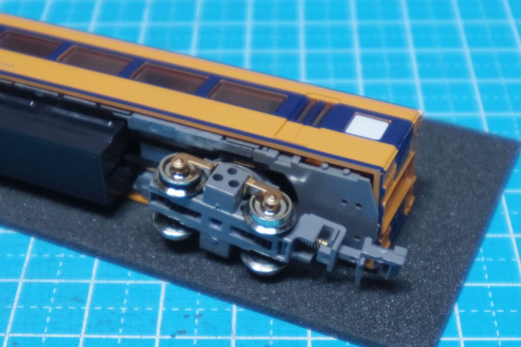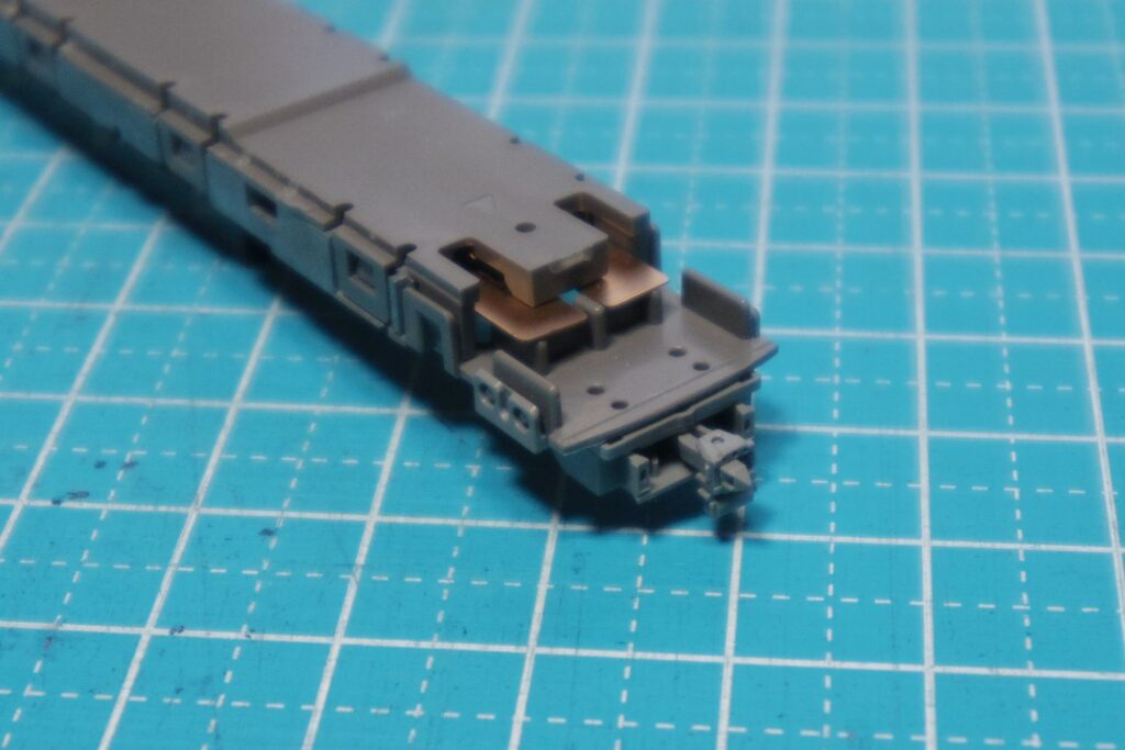 これで、前面側にボディマウントカプラーを取り付けても台車が干渉しなくなります。