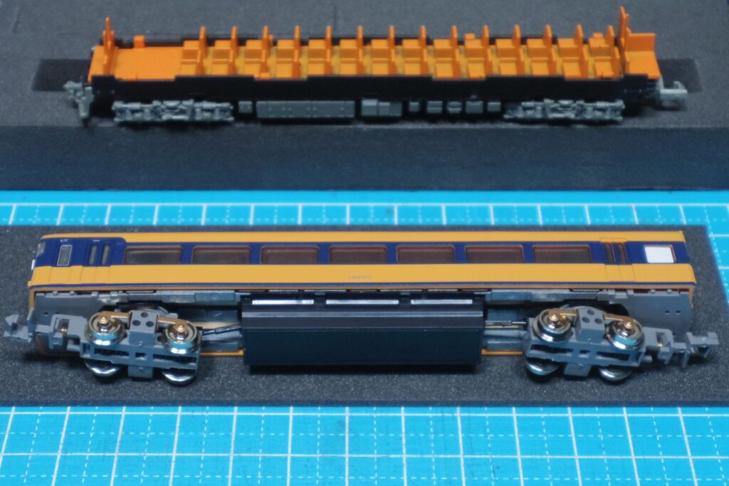 - 先頭車両がM車なら前面側の台車・カプラーをボディマウント化