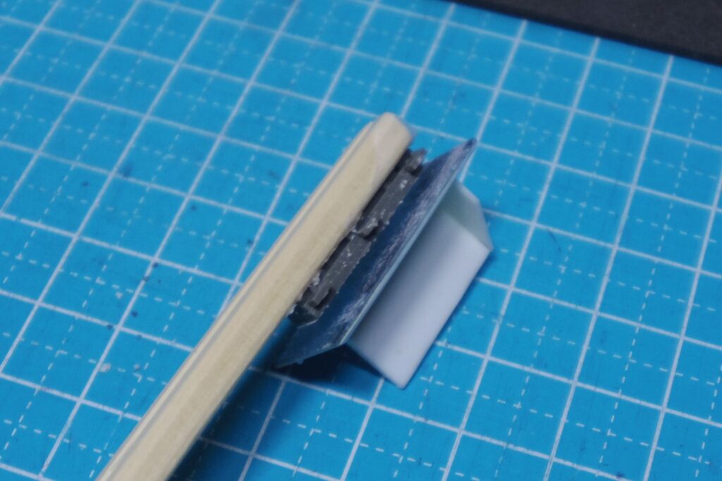 片面の頂点を斜めに削った0.5mm幅のプラ板(0.3mm厚)を新たに接着しようとしたのですが、上手くできなくて諦めました。
