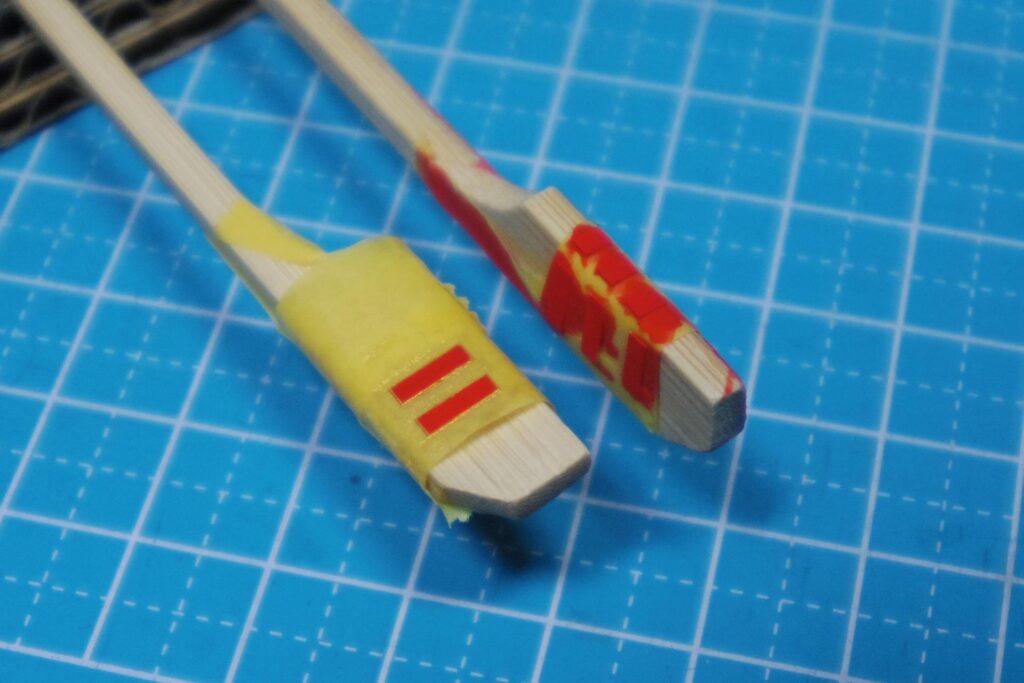 アクリルガッシュで塗装し、全体を「パーマネントスカーレット」、フチを「ゴールドライト」で筆塗りしました。