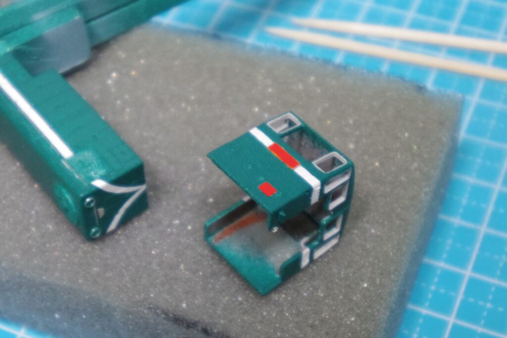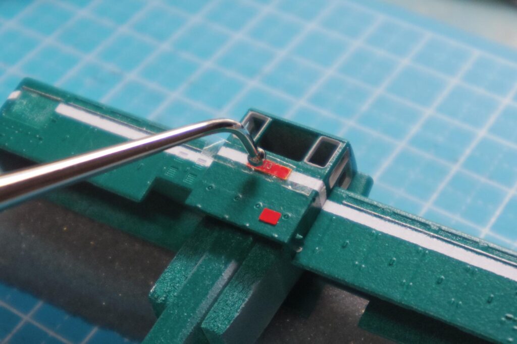 その他、手すりをアクリルガッシュ「シルバー」、キャブ窓のHゴムを「ニュートラルグレー7」でタッチアップ。