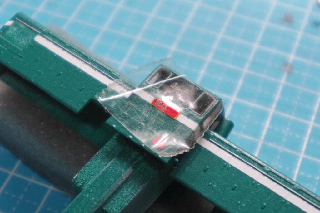 車番を水転写化したオハ31形と違い、今回は平面にしか転写しないのでインレタのまま使っています。