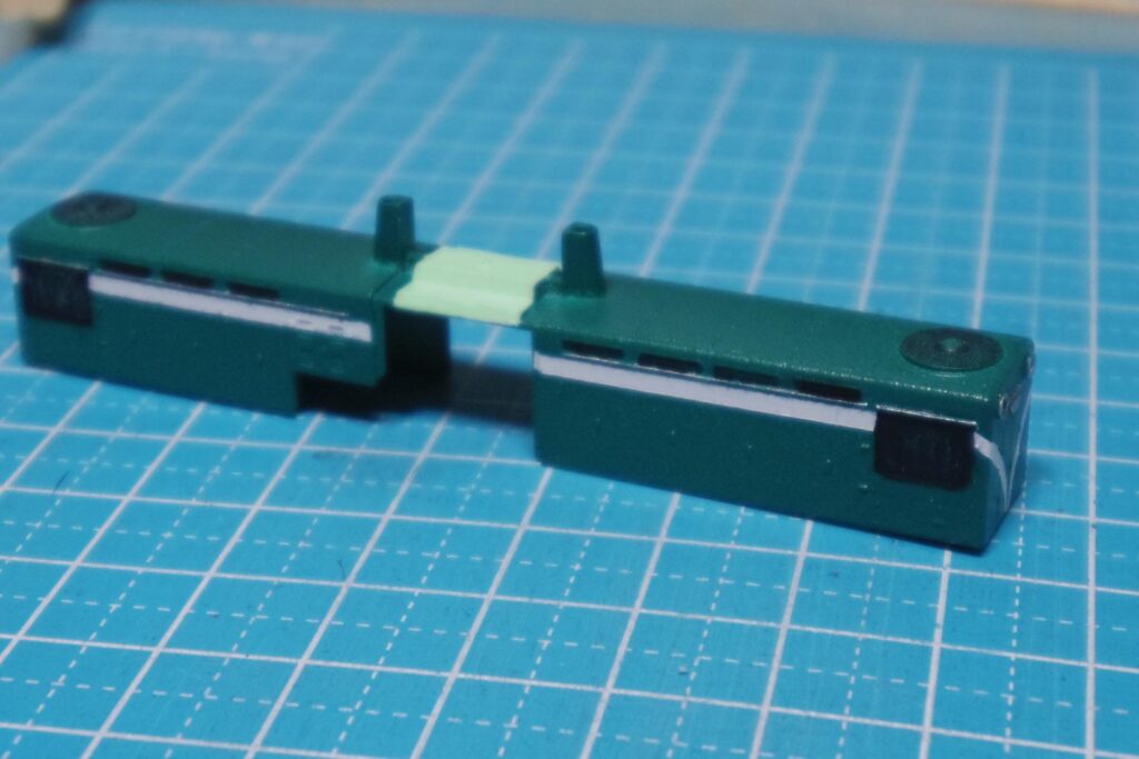前回までで、江若鉄道カラーは想定通りに塗り上げることができました。