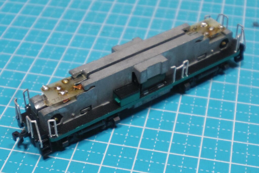KATO旧製品のDD13形ディーゼル機関車を江若鉄道タイプに改造する制作工程を進めています。